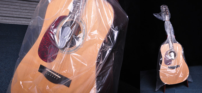想要有针对性完成加湿,首先可以将加湿器对准音孔位置加湿。此外也可以自行创造一个密闭空间——法丽达建议可以使用配有的塑料包装袋包裹琴身,用橡皮筋密封整个加湿环境,不仅效果更加明显,湿度也更易控制。