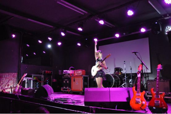 小人国现代音乐明亮的吉他教室里排列整齐的是色彩斑斓的法丽达电吉他,摆放在左侧的展架则预热着晚上的演出,“弦舞夏日”四个飞扬的文字只需一眼便挑拨心弦,教人想迫不及待地置身这被音浪包围的音乐现场。